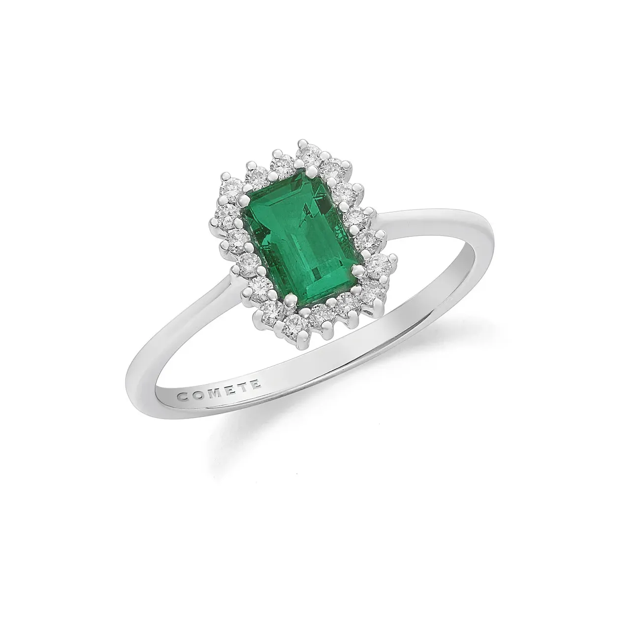 Anello da donna di Comete, della collezione Regina. Anello da donna in Oro bianco 750‰. Diamanti bianchi P. Ct. 14,5 , colore: G e purezza SI. Smeraldo ottagonale 4x6 Ct. 0,70. Larghezza centrale 9,34 mm. Lunghezza centrale 7,50 mm. Profondità centrale 4,60 mm. Questo Anello da donna viene realizzato direttamente della tua misura. Quando ordini questo gioiello, indicaci di quale misura lo preferisci, provvederemo a ordinarlo per te. La referenza è: ANB 2695