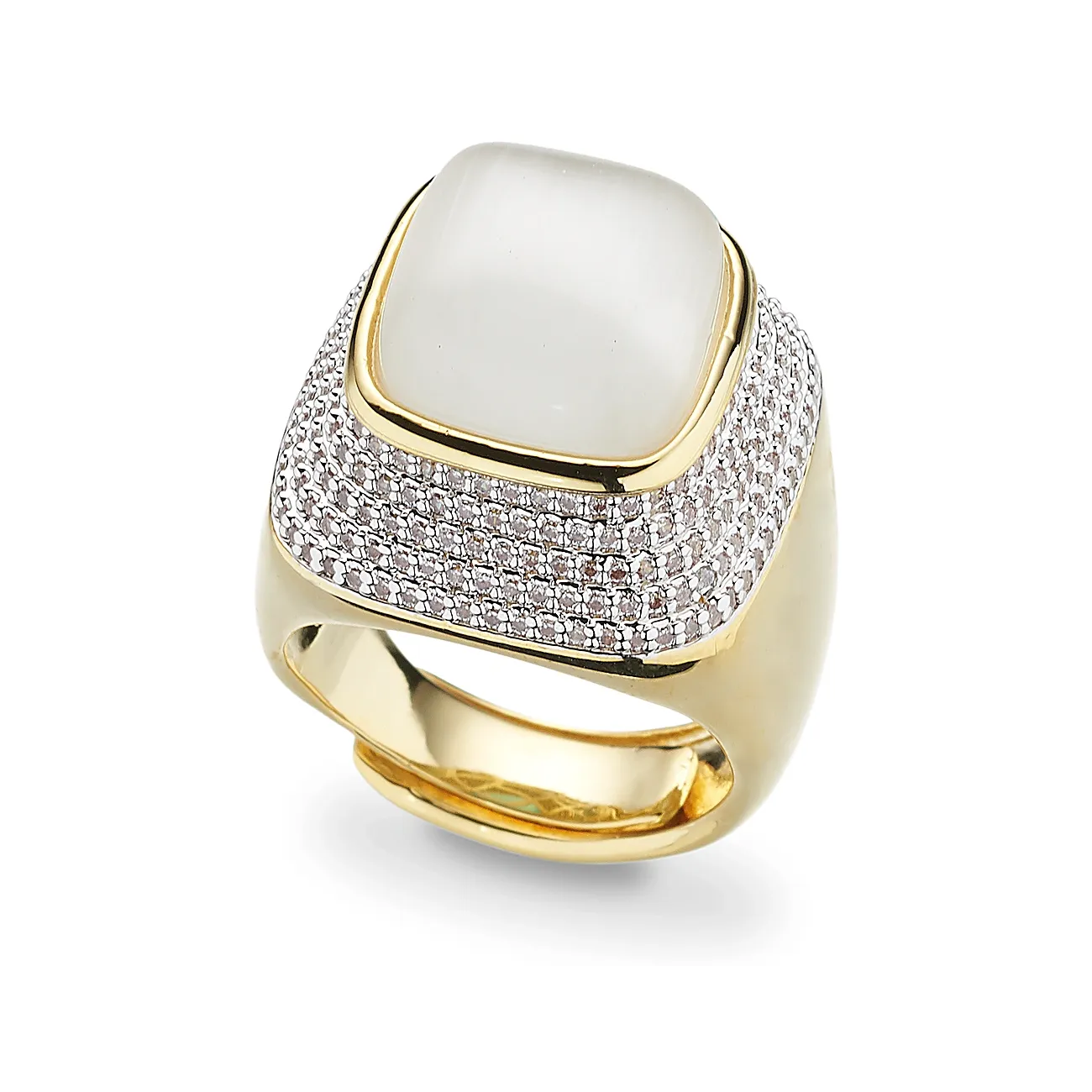 Anello di Sovrani da donna in ottone finitura oro con pietra verde acqua .Il gioiello fa parte della collezione Cristal Magique. Il gioiello presenta una taglia 17 regolabile .La referenza è : J12284
