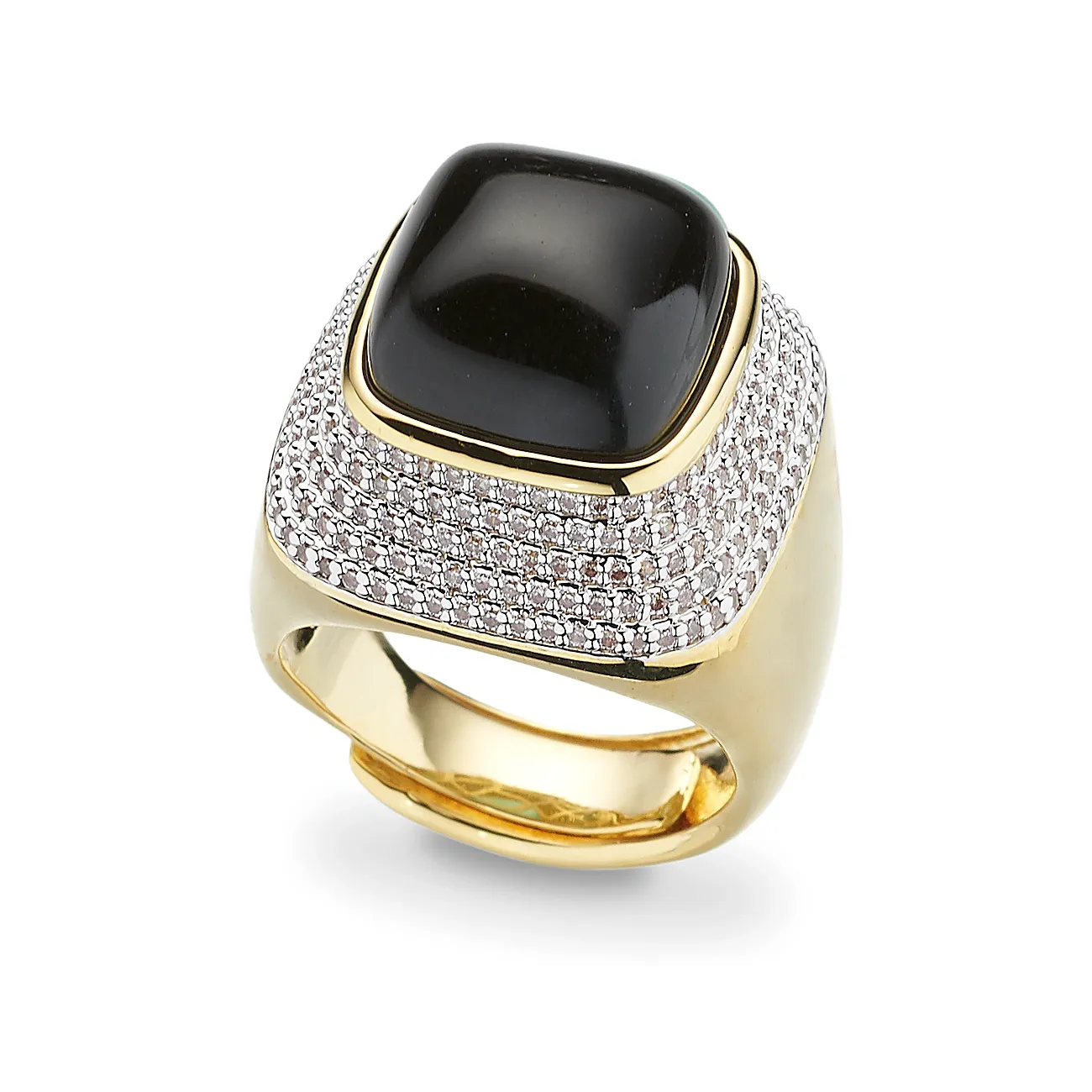 Anello di Sovrani da donna in ottone finitura oro con pietra Nera .Il gioiello fa parte della collezione Cristal Magique. Il gioiello presenta una taglia 17 regolabile .La referenza è : J12285