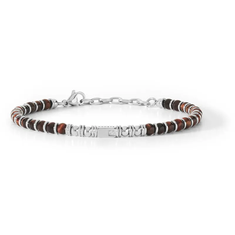 Bracciale Da Uomo Di Comete Della Collezione District. Bracciale In Acciaio, Occhio Di Tigre E Zircone Bianco. Bracciale Della Lunghezza Di 21 Cm. La Referenza È Ubr 888