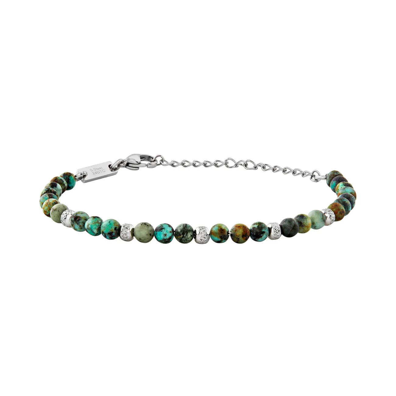Il bracciale Wild, parte della collezione WILD, combina l’eleganza moderna delle sfere in acciaio con la bellezza autentica del turchese africano opaco. Questo connubio crea un accessorio dall’equilibrio unico, in grado di aggiungere vivacità e raffinatezza a qualsiasi look. Perfetto sia indossato da solo che abbinato ad altri gioielli, è pensato per chi ama dettagli distintivi. Caratteristiche di Design Sfere in acciaio lucido: Offrono un tocco contemporaneo e moderno, riflettendo la luce con una finitura specchiata e brillante. Pietre in turchese africano mat: La finitura opaca delle pietre naturali mette in risalto la loro bellezza autentica e i delicati toni verde-azzurro che ispirano freschezza e armonia.