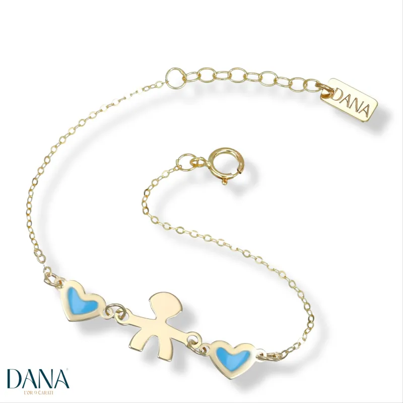 Questo delizioso bracciale Baby, realizzato in oro giallo e smalto blu, è un gioiello tenero e raffinato, perfetto per celebrare l'amore per un bebè maschio. I dettagli in smalto blu, abbinati ai cuori e alla placchetta con l'incisione, aggiungono un tocco di dolcezza e eleganza. Con una lunghezza regolabile da 13 a 15 cm, è ideale per regalare in occasioni speciali come battesimi, compleanni o come portafortuna per una neo mamma. Un accessorio prezioso che unisce stile e sentimentalismo.