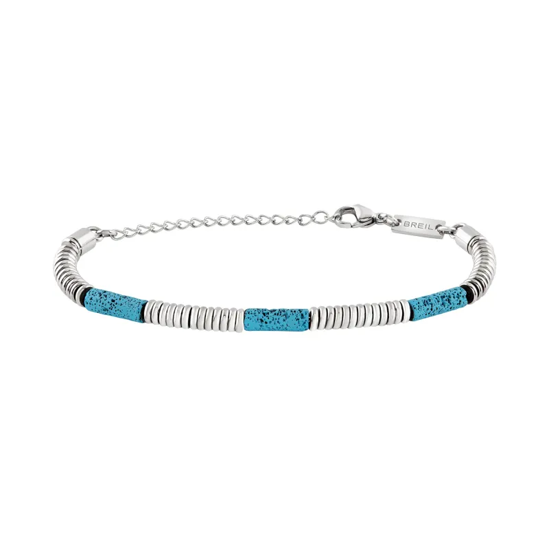 Il bracciale Fusion combina sottili dischi in acciaio ed elementi color turchese, realizzati con la lava. Perfetto per chi ama un look minimal indossato da solo, o più audace se abbinato ad altri gioielli. La chiusura regolabile garantisce una vestibilità personalizzata, adattandosi facilmente al polso.