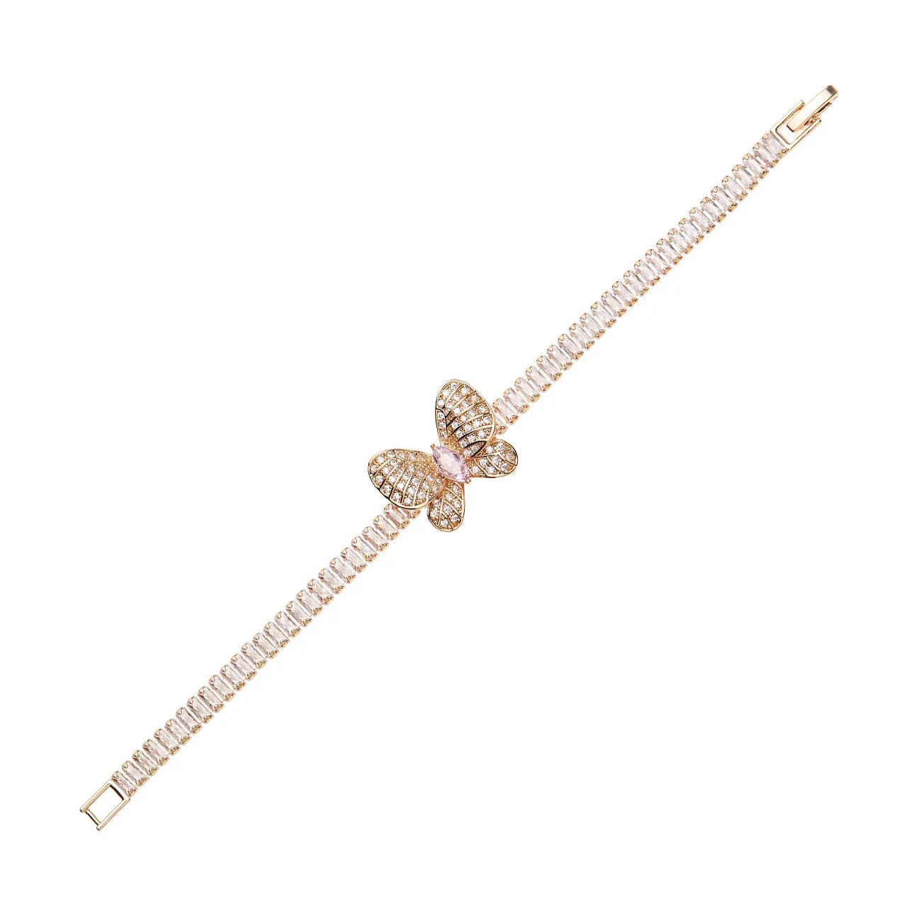 Collana da donna di Ottaviani della collezione Elegance. Collana tennis pendente dorata con zirconi bianchi con farfalla e chiusura a scomparsa. La referenza è 501230C
