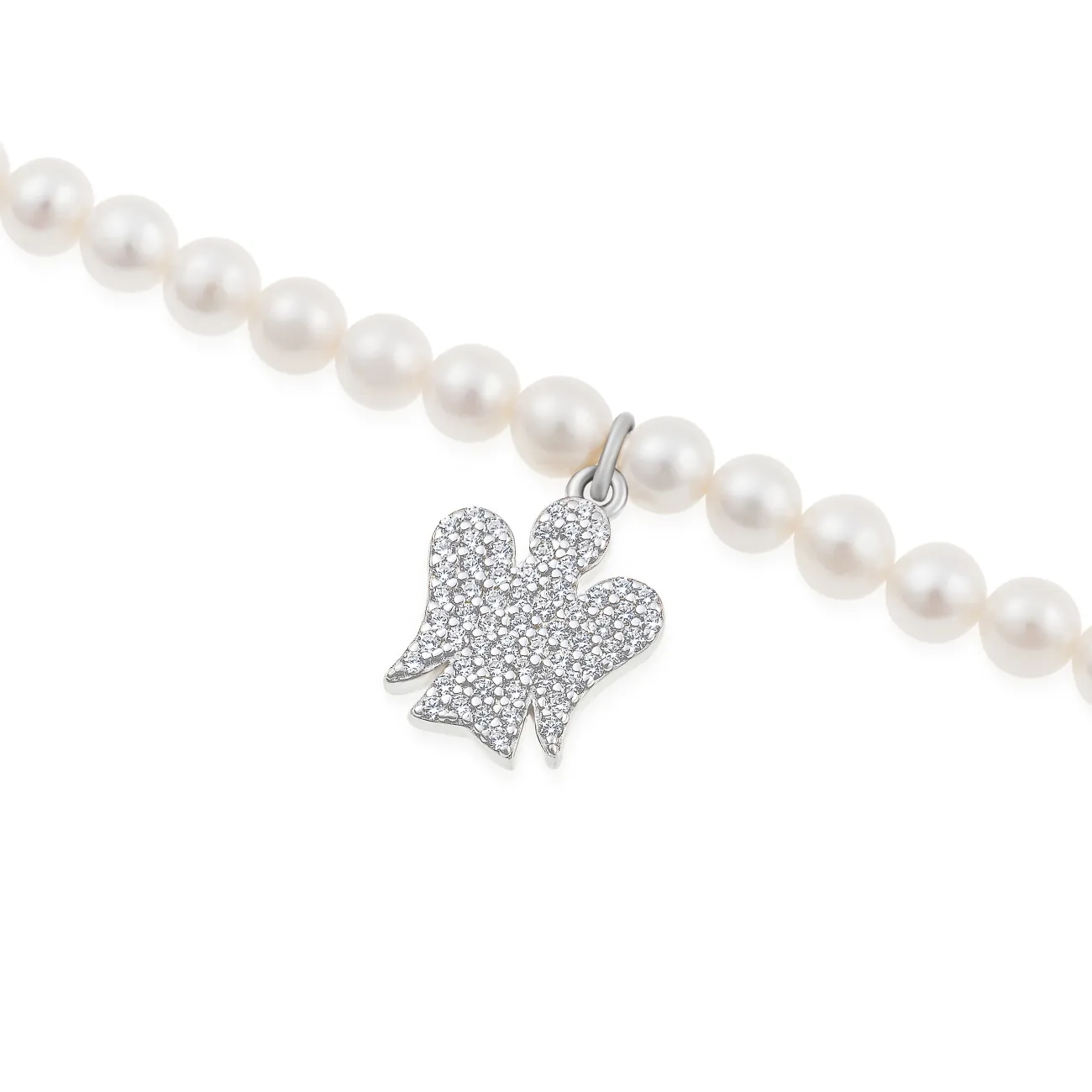 Bracciale di perle bianche dal fascino classico e raffinato, impreziosito da un delicato pendente angelo in argento con zirconia bianchi. Le perle, dal diametro di circa 5,5/6 mm, creano una fila elegante e luminosa che avvolge il polso con sobria eleganza, perfetta per chi ama uno stile senza tempo. Il pendente angelo, di circa 1 cm di base per 1,2 cm di altezza, aggiunge un tocco simbolico e romantico, rendendo il bracciale un gioiello dal forte significato affettivo. Con una lunghezza di 19 cm, il bracciale è pensato per garantire una vestibilità comoda e femminile nella maggior parte dei polsi. I luminosi zirconia bianchi incastonati sull’angelo creano delicati punti luce a ogni movimento, esaltando la brillantezza delle perle. Ideale come regalo per occasioni speciali, comunioni, ricorrenze o semplicemente per avere sempre al polso un piccolo simbolo protettivo, questo bracciale di perle bianche è un accessorio elegante e versatile.
