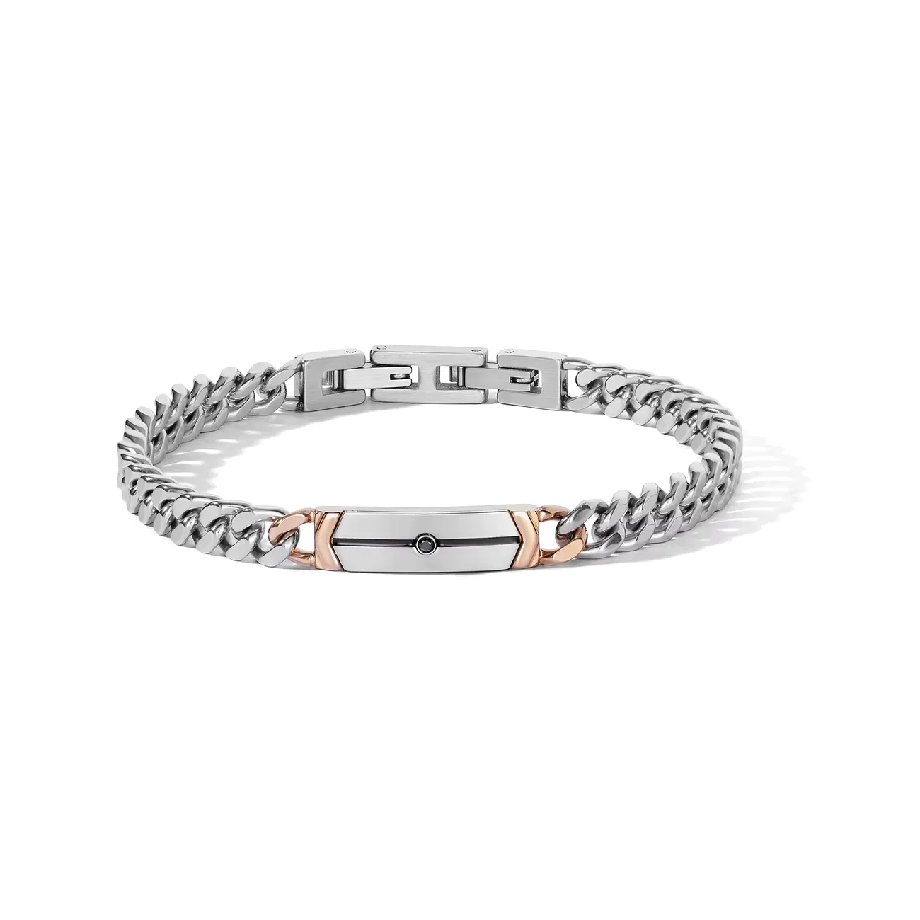 Bracciale Comete Zip in acciaio lucido con trattamento PVD (se presente) e dettagli raffinati, dal design contemporaneo e lineare che unisce robustezza e stile. La piastra centrale ha larghezza 6,00 mm, lunghezza 32,00 mm e spessore 2,78 mm, mentre il sistema di chiusura offre 2 regolazioni per una vestibilità adattabile a polsi di circa 18,50 cm e 20,00 cm, garantendo comfort e sicurezza. Perfetto da indossare ogni giorno grazie alla sua solidità e alla finitura lucida, si presta sia a look casual sia a abbinamenti più ricercati in abbinamento ad altri bracciali; un accessorio versatile pensato per chi cerca un dettaglio contemporaneo con attenzione al dettaglio tecnico.