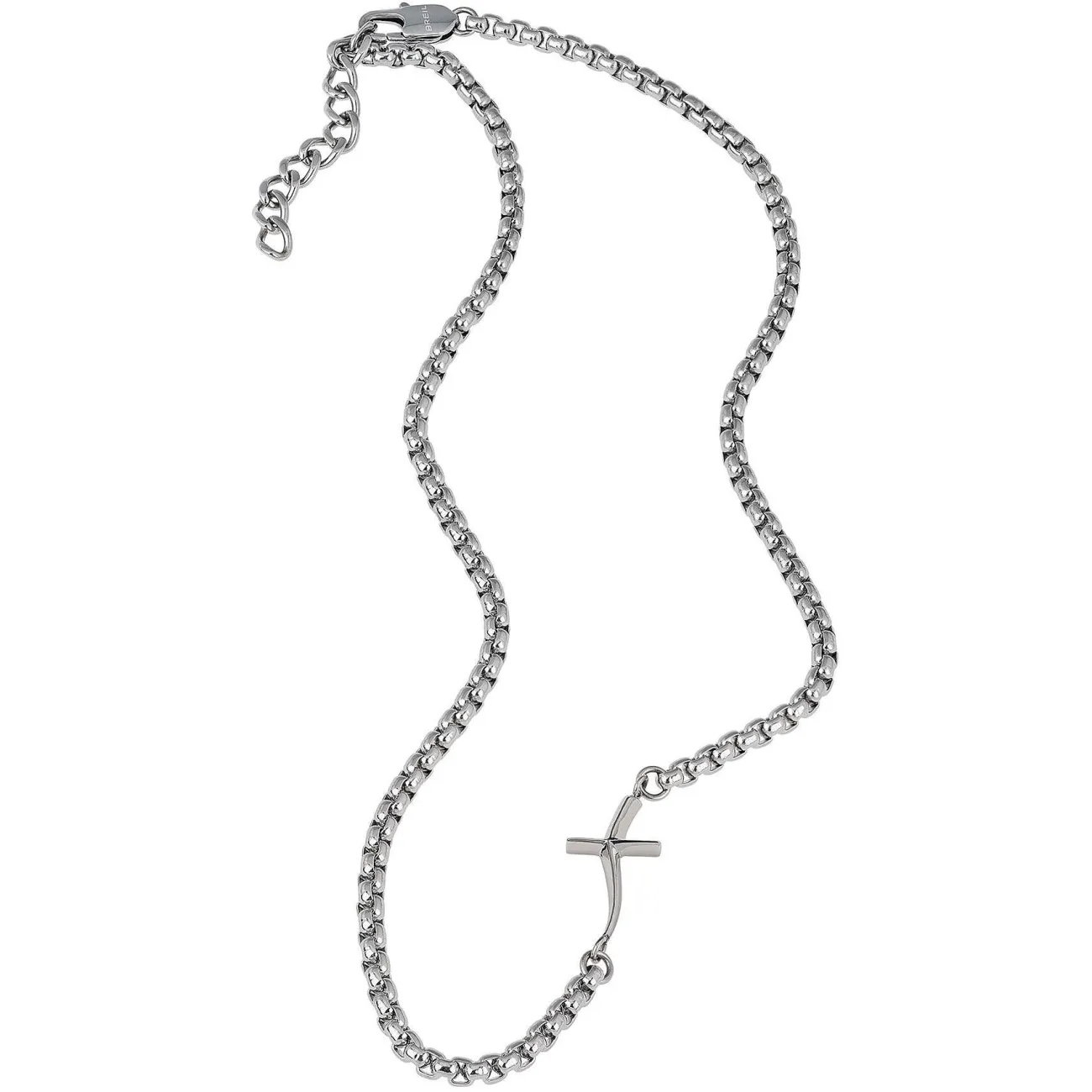 Collana Da Uomo Di Breil, Della Collezione B.X. Gioiello Con Catena In Acciaio Lucido Con Croce Asimmetrica Forma Breil. Chiusura A Moschettone. Lunghezza Massima 52 Cm, Regolabile A 47 Cm. La Referenza È Tj2864.