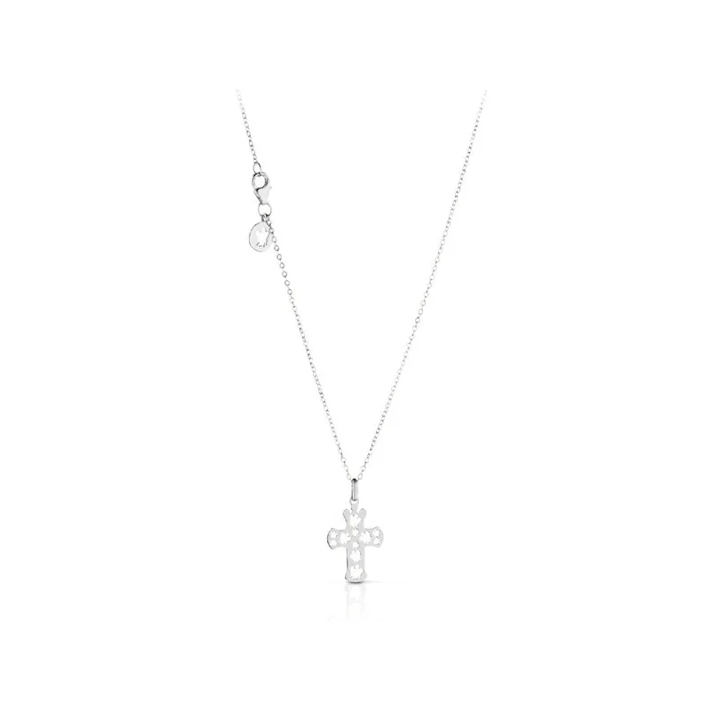 Gioiello Roberto Giannotti Della Collezione Angeli. Collana In Oro bianco Con Pendente, Collana In Oro Con Pendente. Oro 375/°°° - Lunghezza Catena 42/45 Cm - Croce: Base 1,6 Cm - Altezza 2,4 Cm . Referenza: Giannotti nkt211b
