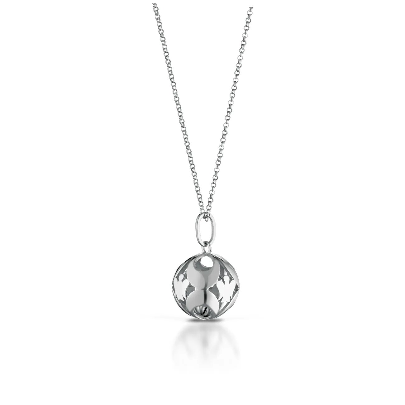 Raffinata collana Chiama Angeli caratterizzata da un pendente con piccoli angeli in argento, simbolo di protezione e serenità. Questo gioiello elegante emette un suono dolce e rilassante, tipico del Chiama Angeli, ed è perfetto per future mamme o come regalo speciale per una persona cara. Un accessorio prezioso che unisce stile e spiritualità, aggiungendo un tocco di luce e significato a qualsiasi look.