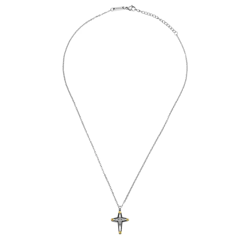 La collana Ceramic Brick è caratterizzata da un design deciso: la catena in acciaio sostiene un pendente a croce smaltato, arricchito da cubic zirconia neri che donano luminosità al gioiello. Quattro viti gold, posizionate con precisione, esaltano il carattere audace del gioiello. La chiusura a moschettone permette di regolare facilmente la lunghezza, assicurando una vestibilità personalizzata e confortevole.