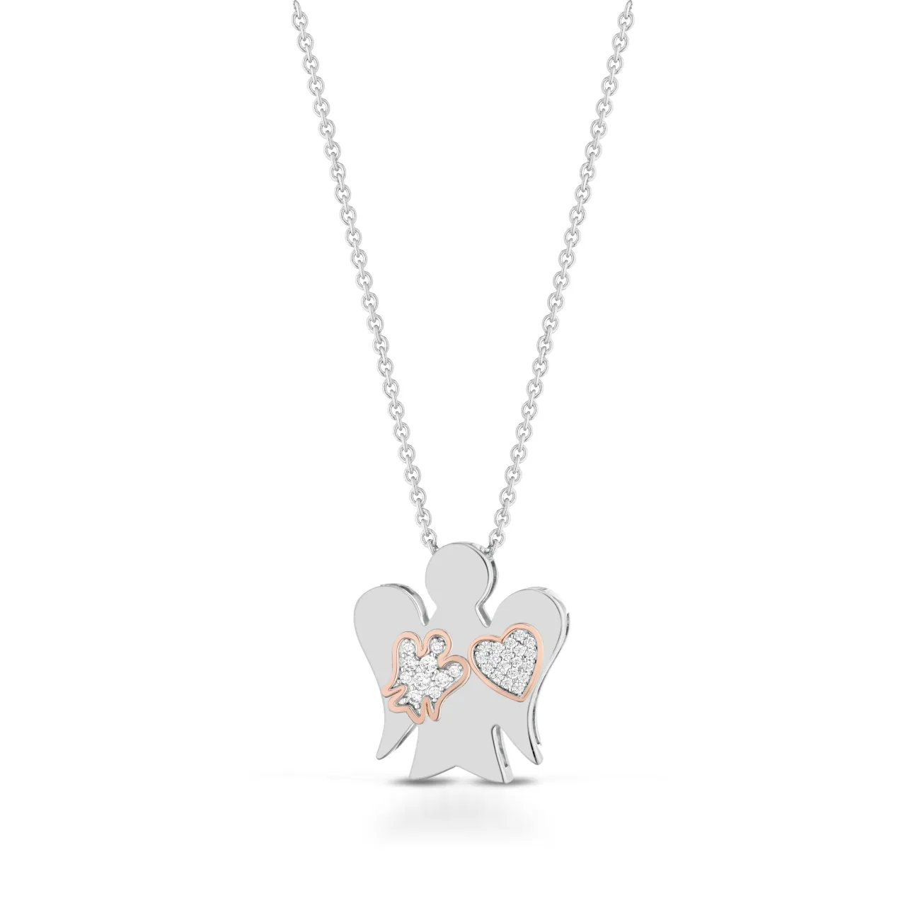 Pendente a forma di angelo è un gioiello dal forte valore simbolico, perfetto per chi ama accessori luminosi e ricchi di significato. Realizzata in argento, unisce dettagli raffinati come l’angelo e il cuore rosato, creando un contrasto elegante e romantico che dona carattere al design senza risultare eccessivo. Gli zirconi bianchi impreziosiscono il pendente con punti luce brillanti, ideali per valorizzare il décolleté e rendere speciale anche un look essenziale. Le dimensioni del pendente (base 1,8 cm – altezza 2 cm) lo rendono ben visibile e armonioso al centro della collana. La catena è regolabile con lunghezza 40/45 cm, così puoi scegliere la vestibilità più adatta alla scollatura e all’occasione, dall’uso quotidiano alle cerimonie. La collana GIA482 è anche un’ottima idea regalo per compleanni, anniversari, comunioni o ricorrenze importanti: l’unione di angelo e cuore la rende un pensiero affettuoso.