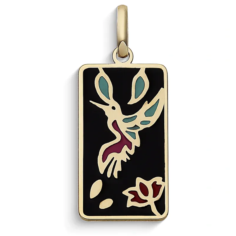 Ciondolo Comete “Il mio entusiasmo per la vita” in oro giallo 375‰ con smalti, un gioiello luminoso e pieno di carattere pensato per celebrare energia, voglia di fare e gioia quotidiana, nelle dimensioni 16 mm x 9 mm per una presenza elegante ma discreta, perfetto da indossare ogni giorno su una catena minimal o da regalare come augurio di positività e slancio.