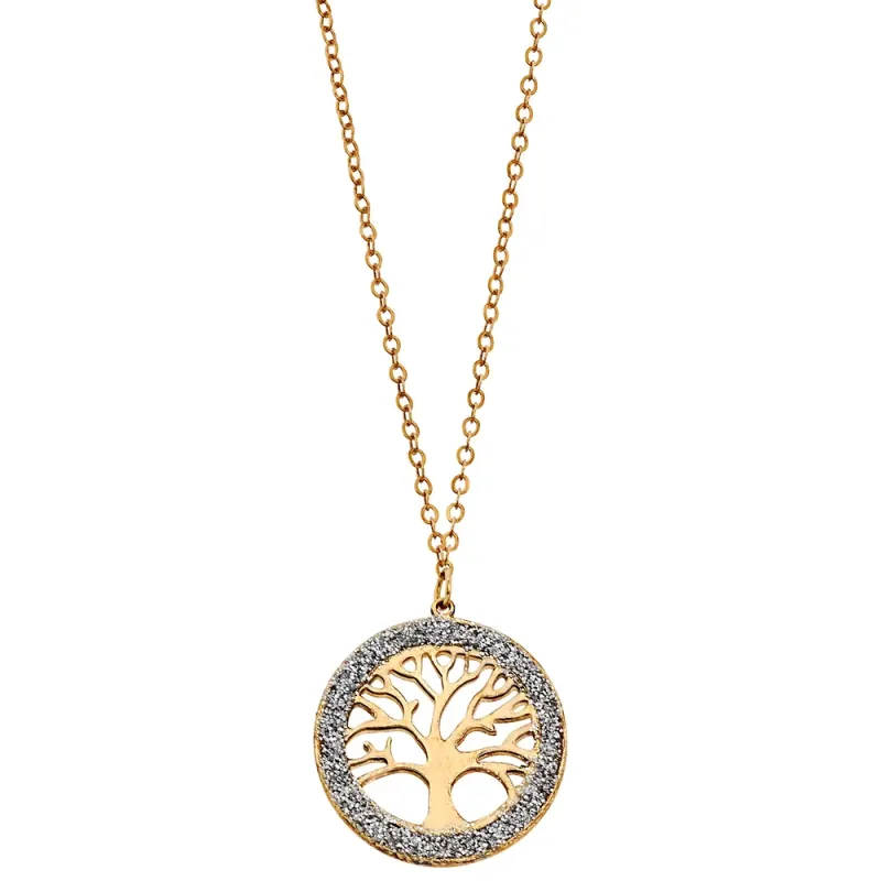 Girocollo Ambrosia in oro 375‰ con centrale raffigurante l’Albero della Vita, KAGZ011: design studiato per comfort e vestibilità quotidiana, con un elemento centrale progettato per creare riflessi armoniosi; adatto sia a look minimal che a layering con altre collane, perfetto come regalo simbolico.