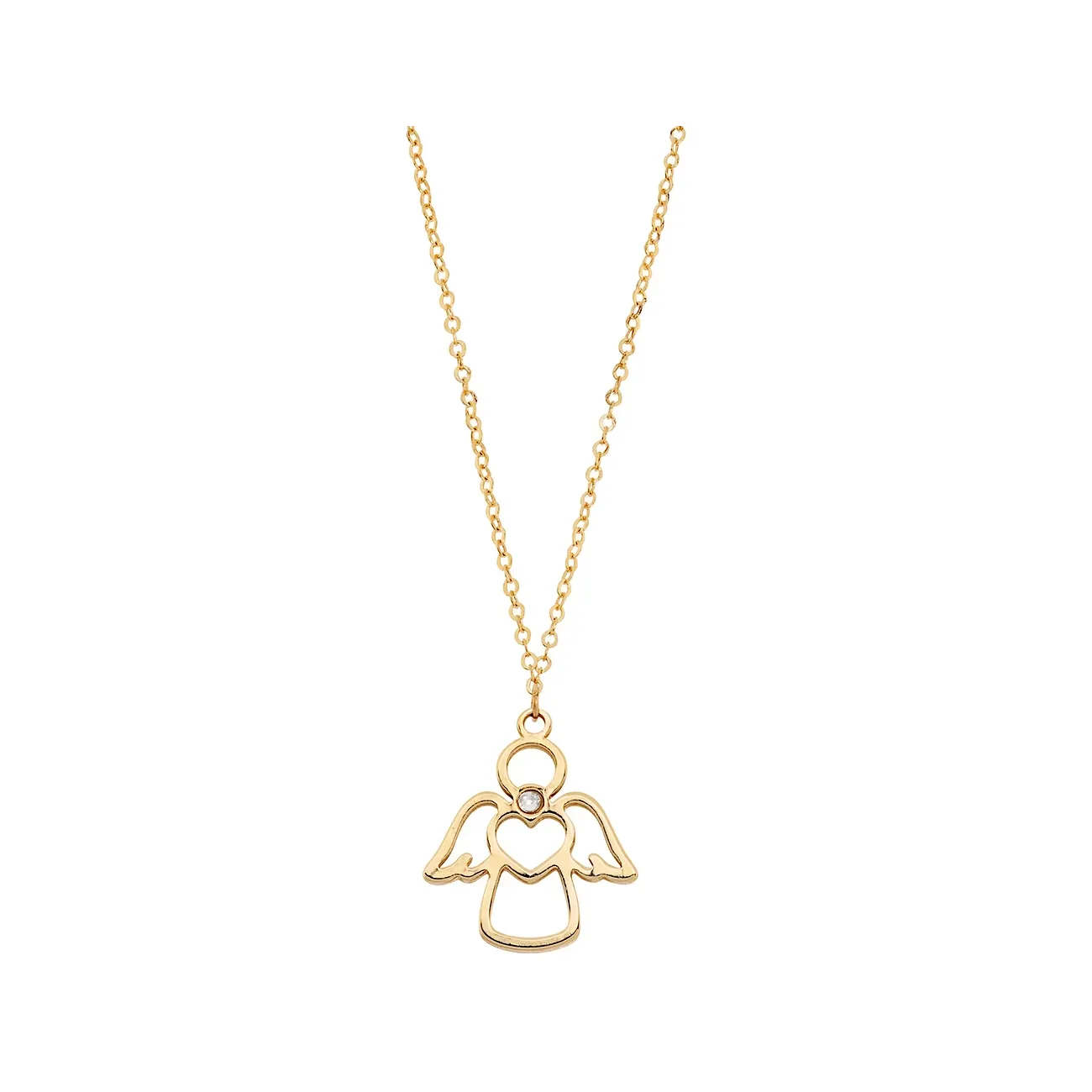 Girocollo Ambrosia in oro 375‰ con centrale Angelo, KAGZ013, pensato per illuminare il décolleté con un simbolo di protezione e dolcezza; minimal e versatile, perfetto da indossare da solo o in layering.