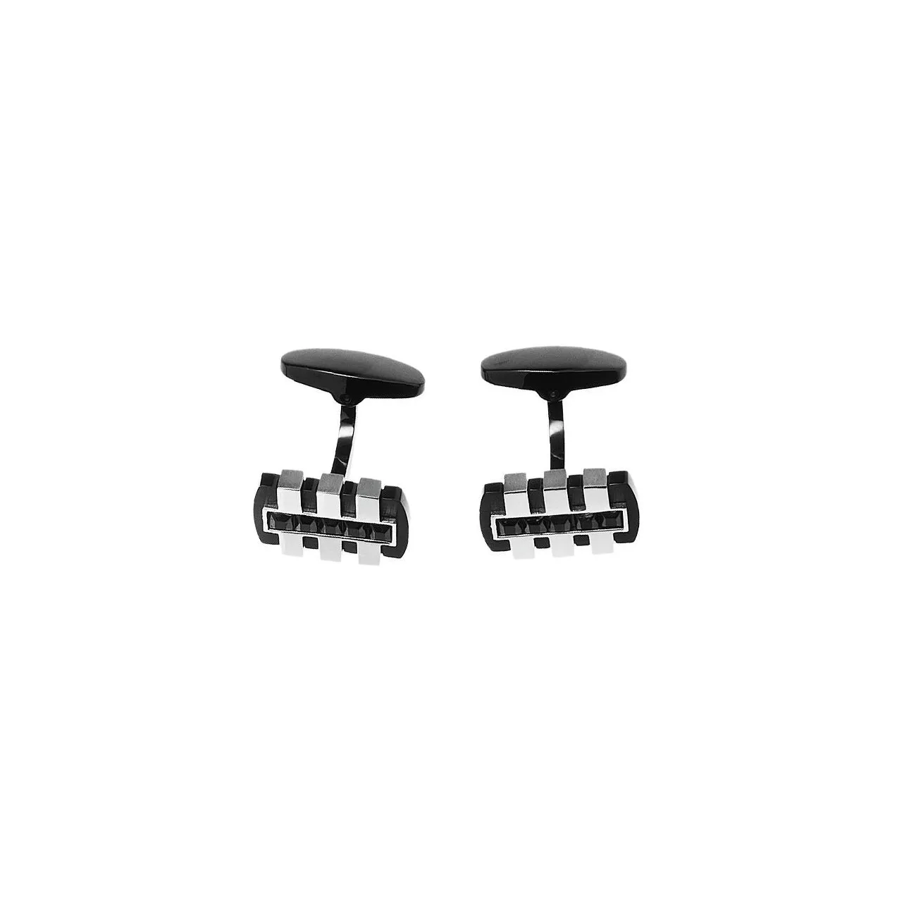 Gemelli Da Uomo Di Ottaviani. Gioiello Realizzato In Acciaio, Resina E Zircone. Gemelli Di Colore Acciaio E Nero. Gioiello Con Soggetto A Forma Di E Chiusura . Gemelli Di Dimensioni Cm 1,6X2,7. La Referenza È 600198G