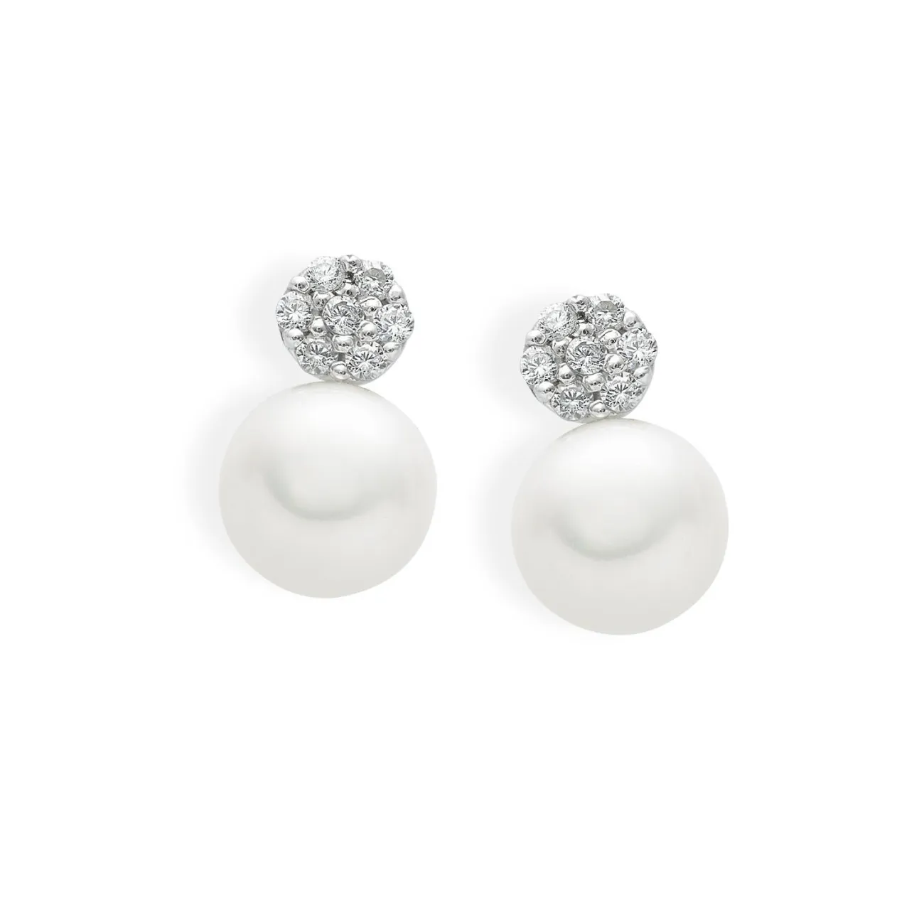 Ambrosia, gioiello donna, orecchini oro 750‰ , zirconi e perla coltivata ø 7/7,5, collezione: collezione vetrina, referenza: aop 115