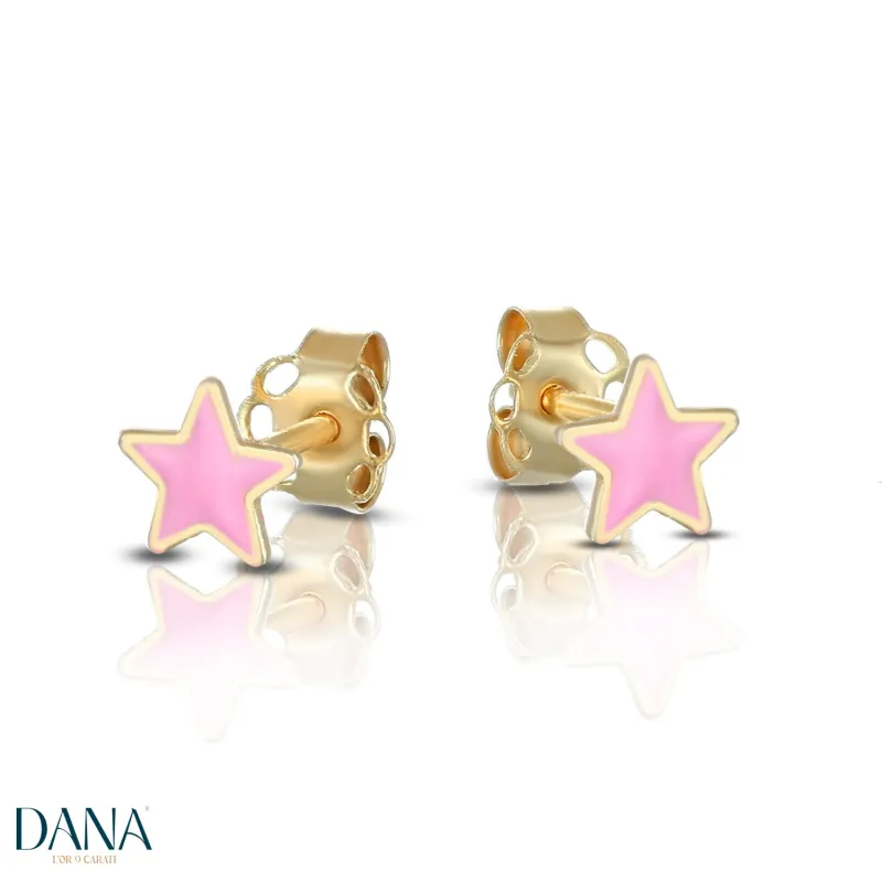 Questi deliziosi orecchini baby a lobo sono un gioiello raffinato e romantico, perfetto per chi ama i dettagli femminili e delicati. Realizzati in oro giallo lucido, presentano una graziosa stella arricchita da smalto rosa, che aggiunge un tocco di dolcezza e luminosità. Il design mini e leggero li rende ideali per ogni giorno, ma anche per occasioni speciali come compleanni o feste, regalando un'eleganza discreta e sofisticata.