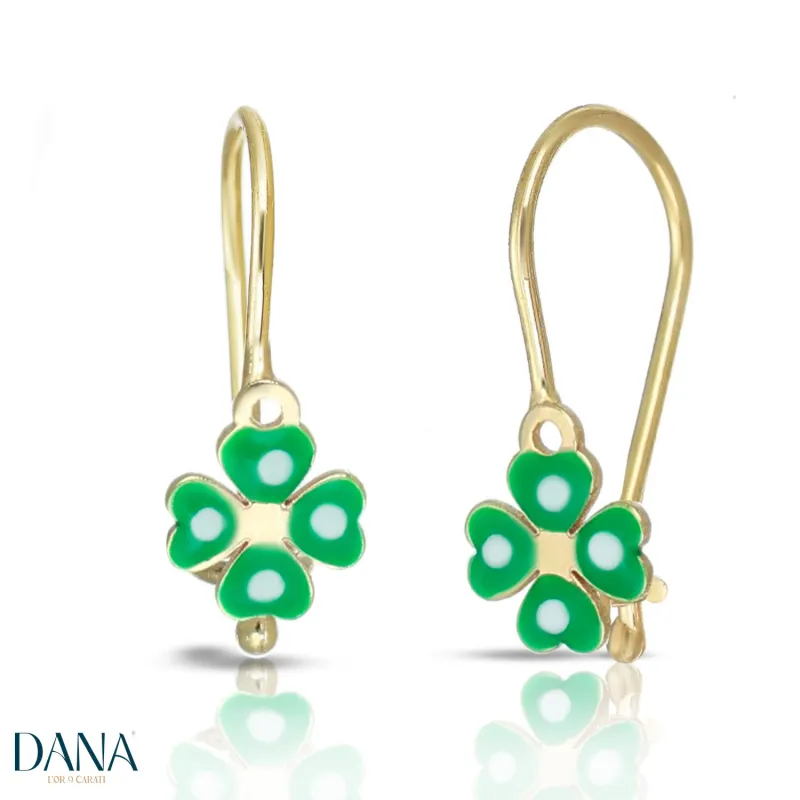 Questi deliziosi orecchini a lobo, con chiusura ad amo, sono perfetti per aggiungere un tocco di eleganza e fortuna al tuo look. Realizzati in oro giallo, presentano un raffinato quadrifoglio smaltato in verde, simbolo di prosperità e stile senza tempo. Ideali per occasioni quotidiane o eventi speciali, donano un'aura di freschezza e delicatezza. Lo smalto verde brillante contrasta piacevolmente con il calore dell'oro, creando un accessorio versatile e carico di significato.