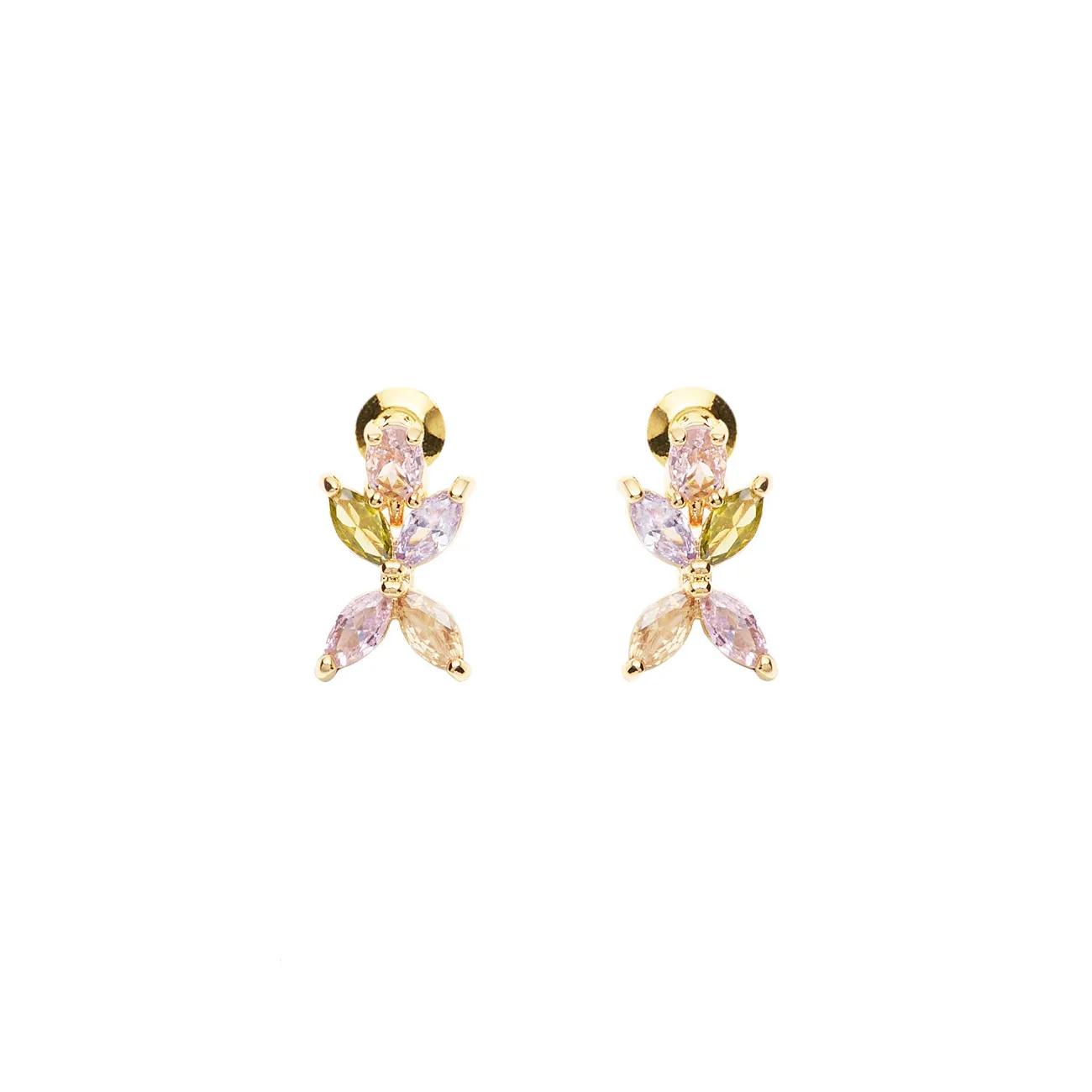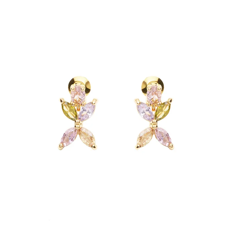 Orecchini da donna di Ottaviani della collezione Elegance. Orecchini pendenti dorato con zirconi multicolore e chiusura a farfallina. La referenza è 501225O