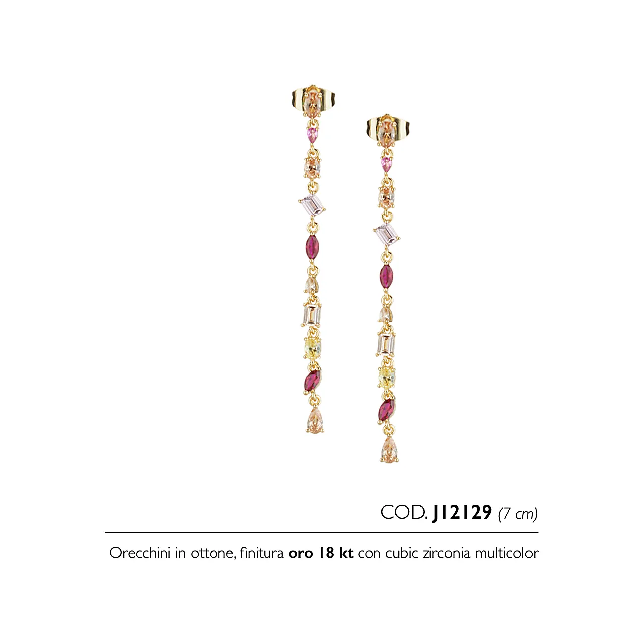 Gli orecchini in ottone con finitura oro 18 kt e cubic zirconia multicolor sono un accessorio elegante e contemporaneo, perfetto per aggiungere al look un punto luce vivace e sofisticato. La finitura oro 18 kt dona calore e un effetto prezioso, mentre i cubic zirconia multicolor catturano la luce con riflessi brillanti e sfumature diverse, creando un equilibrio raffinato tra colore e luminosità. Un gioiello pensato per chi ama distinguersi con dettagli ricercati, senza rinunciare alla versatilità. Ideali da indossare sia di giorno sia di sera, questi orecchini si abbinano facilmente a outfit neutri (bianco, nero, beige) e diventano protagonisti anche su denim e look minimal, dando carattere con un solo gesto. Il multicolor li rende perfetti per giocare con abbinamenti tono su tono o a contrasto e per aggiungere una nota allegra ma elegante anche in occasioni speciali.