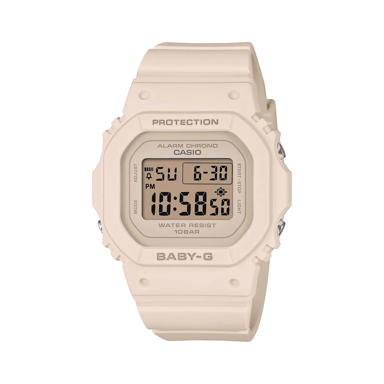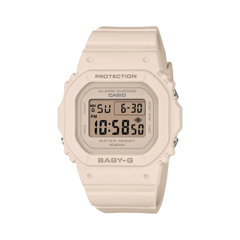 Classico look squadrato in versione più sottile e compatta (cassa ridotta vs predecessore); dimensioni 42.1 × 37.9 × 11.3 mm, peso 30 g; cassa/lunetta e cinturino in resina, vetro minerale; resistente agli urti, impermeabile 10 bar; batteria CR1616 ~3 anni; retroilluminazione LED (Super Illuminator); funzioni: cronometro a centesimi, timer 24 h (ripetizione), promemoria sonoro multifunzione, segnale orario, avvisi lampeggianti, calendario automatico 2099, precisione ±15 s/mese; indicazione ora/min/secondo, PM, mese, data, giorno; cinturino regolabile 125–180 mm; design casual sottile ideale per ogni outfit.