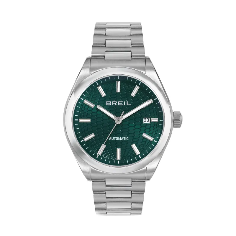 L’orologio da uomo Sphera unisce design e precisione in un equilibrio perfetto. La cassa e il bracciale in acciaio bilux color silver si fondono in linee fluide e continue, creando un profilo armonioso e deciso. Il quadrante dark green, impreziosito da un sofisticato pattern esagonale, ospita un datario a ore 3 e custodisce un movimento automatico Miyota 8215, visibile attraverso il fondello trasparente. Un segnatempo pensato per chi ricerca uno stile distintivo senza rinunciare alla funzionalità.