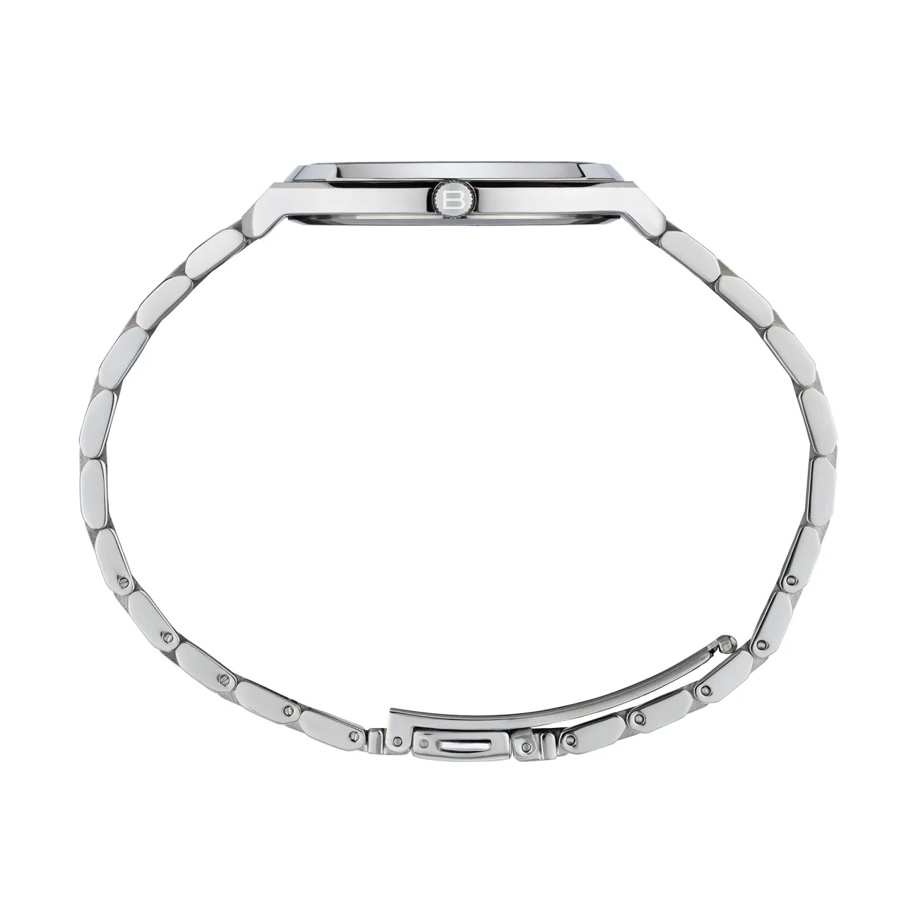 L’orologio solo tempo da uomo BSW 6.5 esprime un minimalismo essenziale che ne valorizza il fascino. BSW, acronimo di Breil Slim Watch, racconta la sua caratteristica distintiva: uno spessore ultra slim di soli 6,5 mm. La cassa leggermente squadrata in acciaio silver con finitura bilux alterna superfici lucide e satinate, in perfetta continuità con il bracciale coordinato. Il quadrante blu sfumato con texture rigata che aggiunge un tocco di originalità contemporanea a un design pensato per chi sceglie la sobrietà come segno di stile.