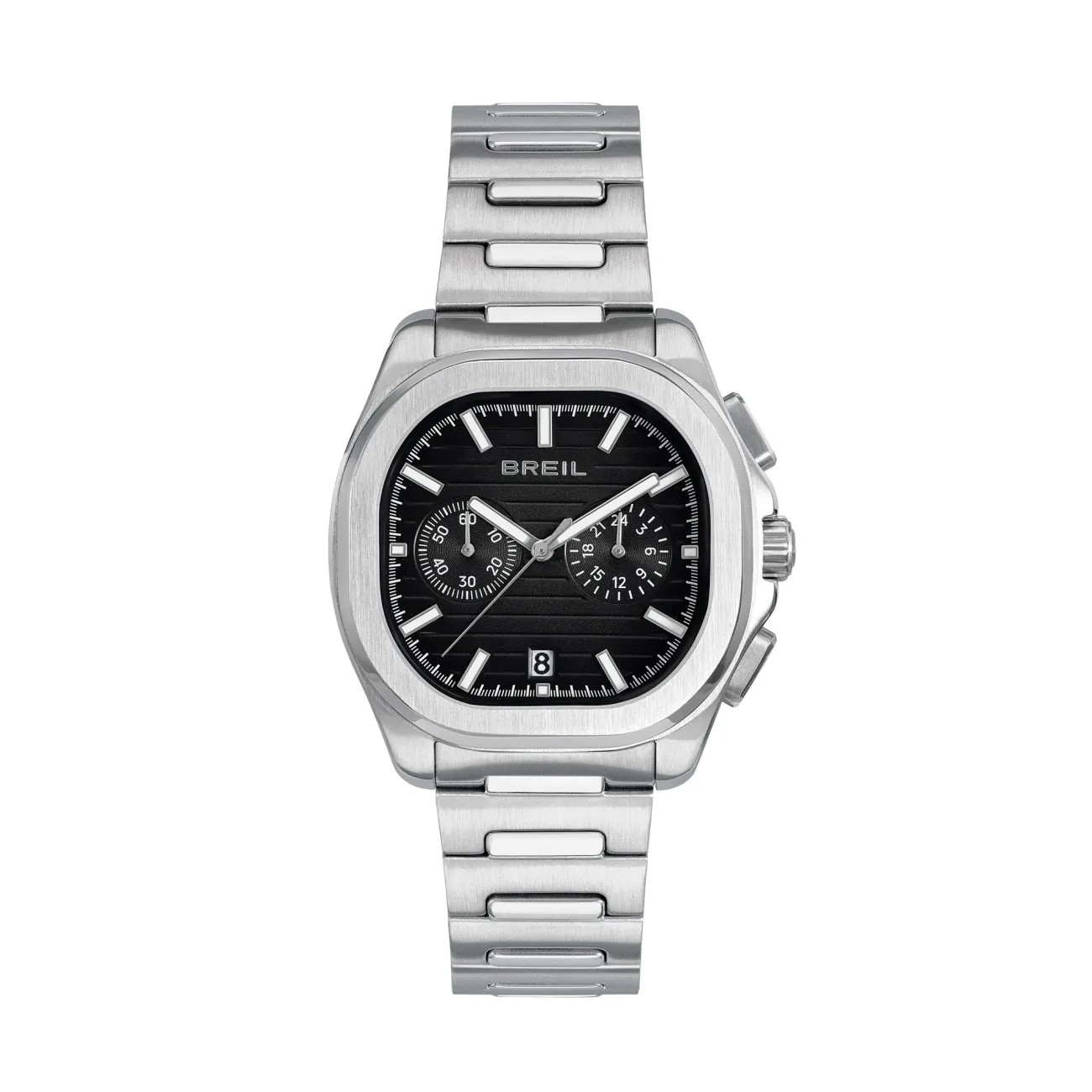 Il cronografo da uomo Retrofuture unisce linee classiche a dettagli contemporanei. È caratterizzato da una cassa in acciaio con finitura bilux e da un quadrante nero con elegante pattern rigato che dona profondità al design, completato da sfere silver con trattamento luminous per una leggibilità ottimale. Il datario è posizionato a ore 6, mentre fondello e corona a vite garantiscono robustezza e affidabilità. Impermeabile fino a 10 ATM, è dotato di un bracciale in acciaio satinato con maglie centrali lucide, un equilibrio perfetto tra sportività ed eleganza.