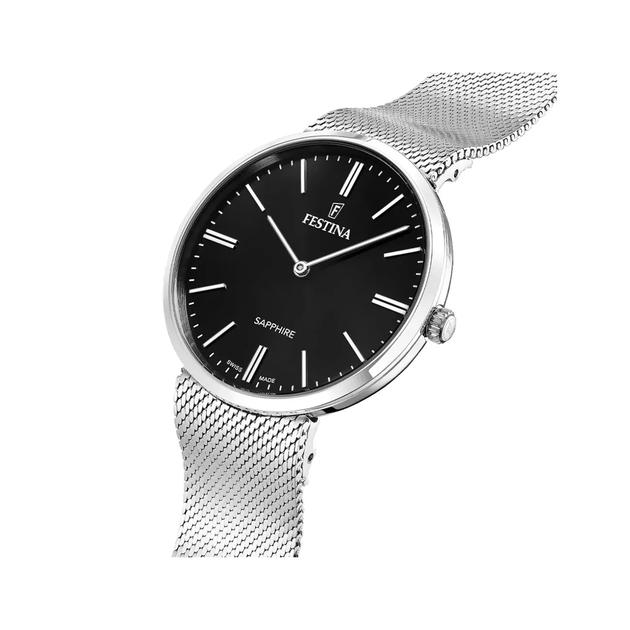 Orologio ore e minuti di Festina da uomo della collezione Grace. Orologio realizzato in acciaio inossidabile 316l con cassa di forma rotonda di misura 39.3 mm e spessore 6,7 mm con vetro zaffiro. Quadrante di colore nero con indici di colore grigio. Cinturino realizzato in acciaio inossidabile 316l di colore argento con chiusura a scatto. Funzioni: ore e minuti. Movimento al quarzo analogico. La resistenza all'acqua è 5 ATM. La referenza è F20074/4