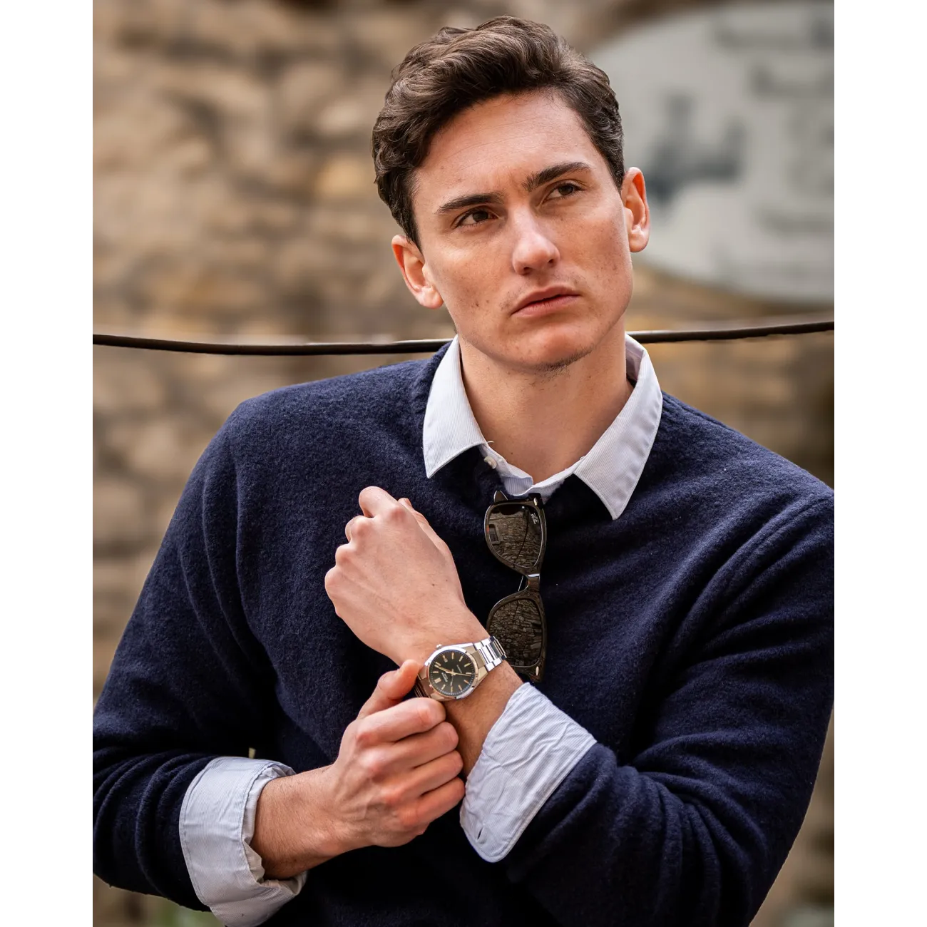 Il nuovo automatico di casa EDIFICE, progettato per chi desidera un orologio meccanico dal look sofisticato e contemporaneo. Il design punta sull’equilibrio: cassa compatta da 38 mm in acciaio inox (43 × 38 × 11,8 mm) e un elegante quadrante blu riccamente strutturato, realizzato con una speciale tecnica di elettroformatura che dona profondità e un effetto premium. Gli indici a matita applicati in rilievo, insieme alla lunetta e alla cassa dal profilo deciso, completano un’estetica dinamica ma raffinata, perfetta sia in ufficio sia nel tempo libero. Il vetro zaffiro ad alta trasparenza assicura una visibilità impeccabile e un’ottima resistenza ai graffi. Il cuore dell’orologio è un movimento automatico con carica manuale realizzato in Giappone, con 21 rubini, frequenza di 21.600 alternanze/ora e riserva di carica di circa 42 ore. La funzione hacking (arresto dei secondi) permette una regolazione precisa, mentre il datario aggiunge praticità quotidiana. Il fondello trasparente a vite lascia ammirare il movimento, esaltando tutto il fascino dell’orologeria meccanica. Con impermeabilità fino a 10 bar, bracciale in acciaio con chiusura one-touch a 3 pieghe e regolazione 150–205 mm, è un automatico solido, elegante e pensato per durare.