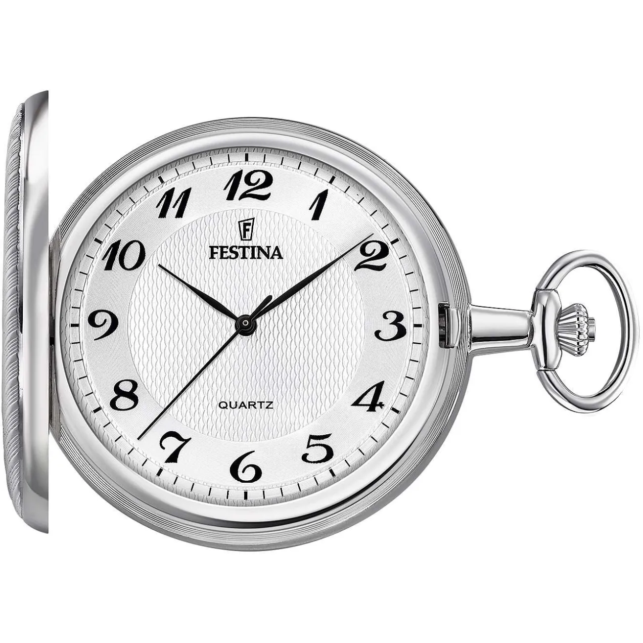 Orologio Solo Tempo Da Uomo Di Festina Della Collezione Bolsillo. Modello Con Cassa In Acciaio, Indici Con Numeri Arabi Dipinti E Cinturino In Acciaio. Orologio 2/3 Sfere. La Cassa Ha Un Diametro Di 49 Mm.