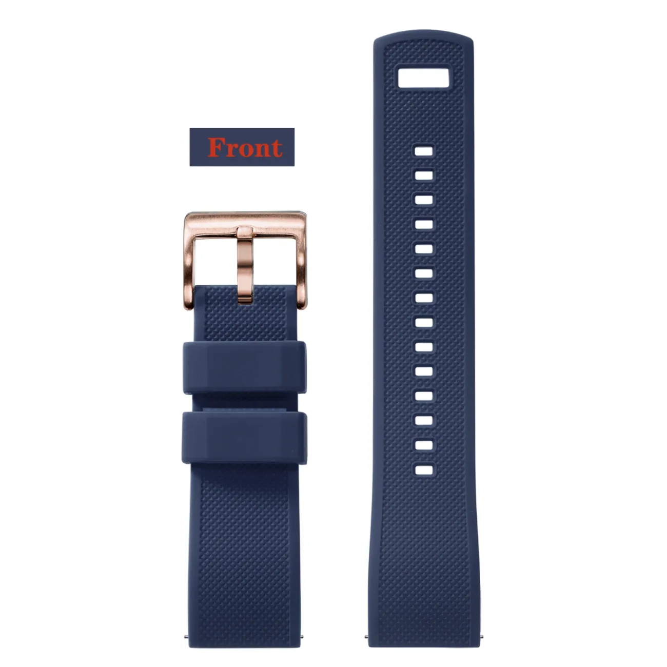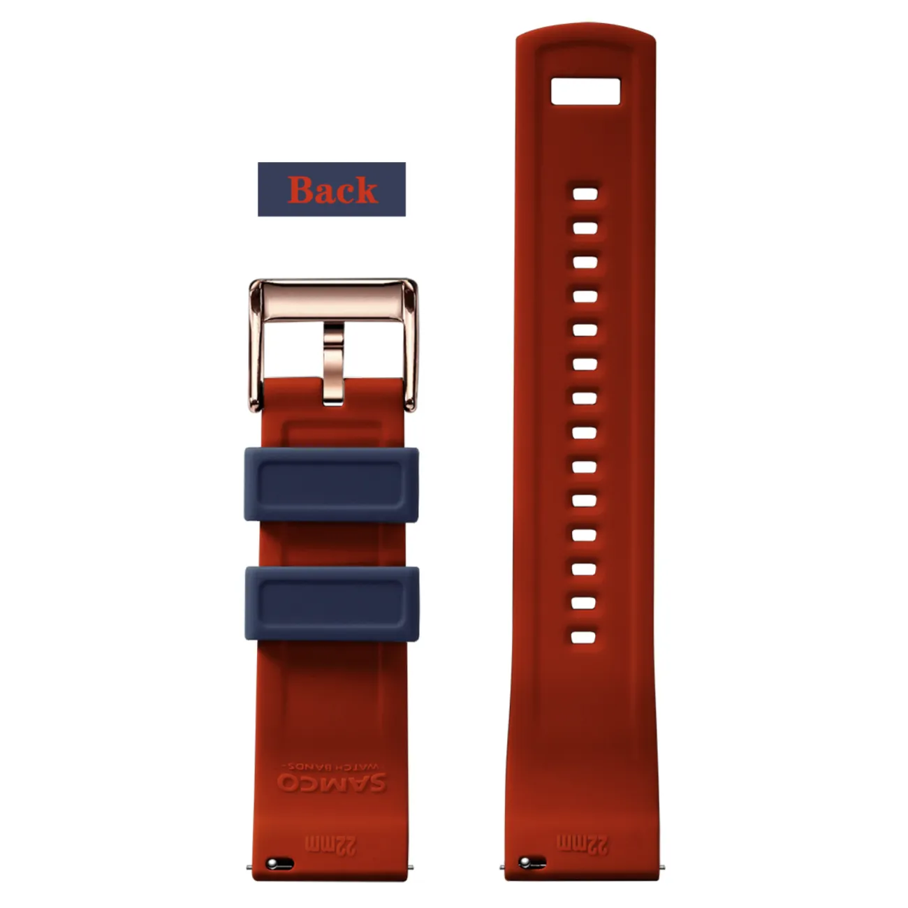 Cinturino per orologio in gomma siliconica con ansa integrata, cinturino bicolore Blu notte e rosso, morbido adatto ad ogni cassa a patto di rispettare le distanze delle anse. Disponibili in due dimensioni, 20MM 22MM cinturino sportivo universale