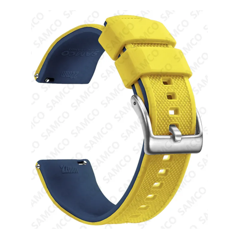 Cinturino per orologio in gomma siliconica con ansa integrata, cinturino bicolore giallo e blu, morbido adatto ad ogni cassa a patto di rispettare le distanze delle anse. Disponibili in due dimensioni, 20MM 22MM cinturino sportivo universale